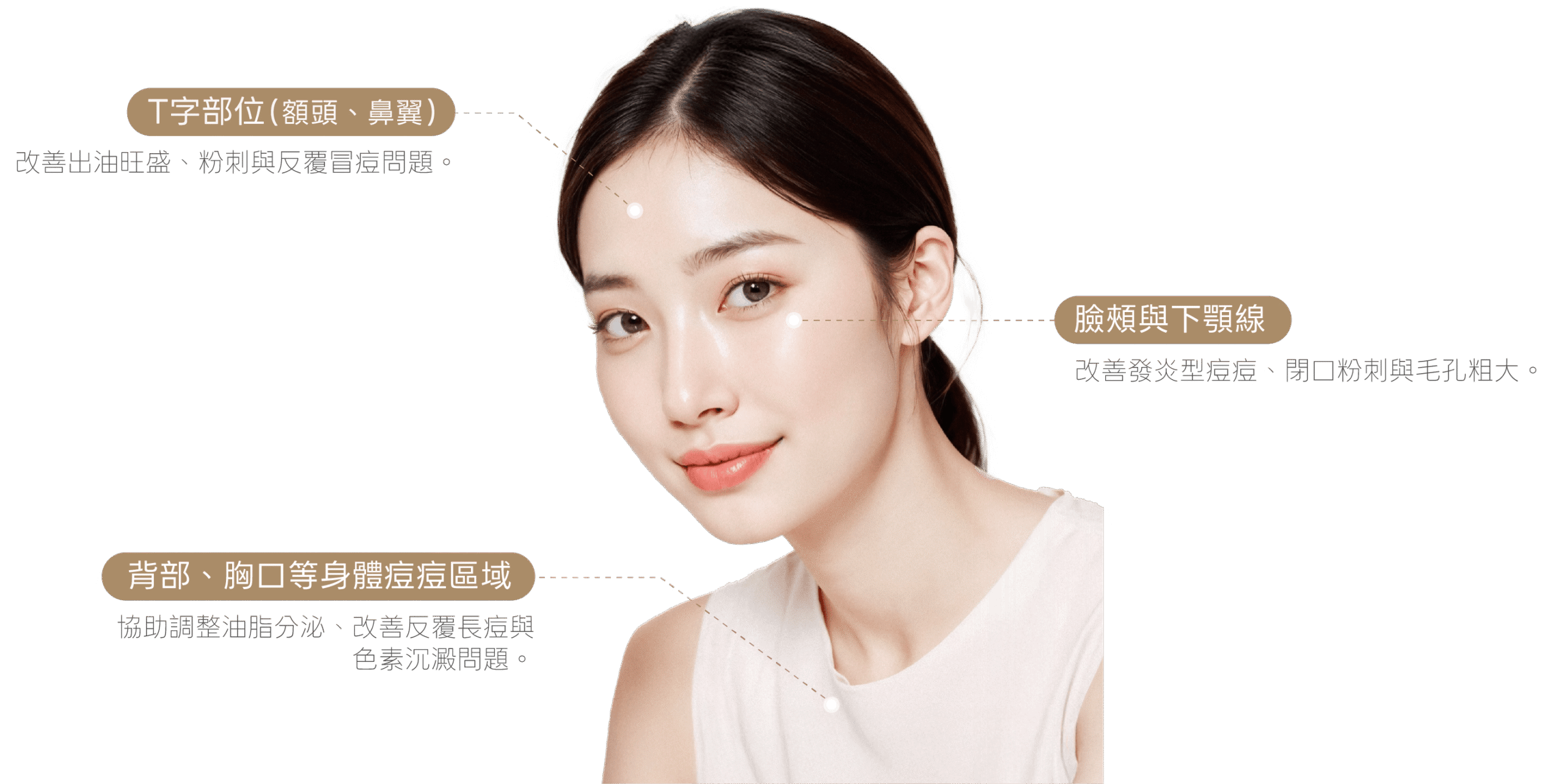 Accu Toning ACCU祛痘激光 從源頭抑制出油、改善痘痘與毛孔阻塞,打造穩定不易復發的清爽膚質。 About the Treatment 什麼是 ACCU 祛痘激光? ACCU 祛痘激光是一種以 1450nm 波長為核心的痘痘調理型雷射,該波長對皮脂與水分具有高度吸收特性,可將能量精準作用於皮脂腺層,抑制過度皮脂分泌,改善毛孔阻塞與發炎型痘痘問題。 Treatment Features ACCU 祛痘激光的特色 不同於傳統以亮膚或淡斑為主的雷射,ACCU 祛痘激光主打「從出油源頭調控」,透過降低皮脂腺活性,協助減少痘痘生成與復發率,同時改善油光、毛孔粗大與痘痘膚質不穩定問題。 1450nm專一波長,精準作用皮脂腺 1450nm 波長對皮脂吸收度高,可將熱能直接傳遞至皮脂腺層,抑制過度出油,從源頭改善痘痘與毛孔阻塞問題。 高能量痘痘調理雷射,降低復發率 透過熱效應降低皮脂腺活性,協助調整油脂分泌平衡,減少反覆冒痘與粉刺生成,提升長期穩定度。 改善毛孔粗大與油光問題 依不同頻率將能量導入皮膚不同深度,1MHz 可傳遞至真皮深層,3MHz 促進膠原生成,10MHz 作用於表皮層,達到分層補水與修復效果。 非侵入式療程,恢復期短 全程無傷口、無需麻醉,術後僅可能出現短暫泛紅或溫熱感,多數人可當天恢復日常作息。 針對痘痘膚質設計,非亮膚型雷射 屬於皮脂腺抑制型痘痘雷射,主打控油、治痘與降低復發,而非美白提亮或淡斑用途。 Treatment Areas 適用施作部位 ACCU 祛痘激光可依不同出油與痘痘分布區域進行分區施作,醫師會根據各部位皮脂腺活性、毛孔狀況與發炎程度,客製調整能量參數與施打範圍。透過 1450nm 雷射能量穩定作用於皮脂腺層,在抑制出油的同時,協助改善毛孔阻塞、粉刺堆積與反覆發炎問題,使膚況逐步穩定。 T 字部位(額頭、鼻翼) 改善出油旺盛、粉刺與反覆冒痘問題。 臉頰與下顎線 改善發炎型痘痘、閉口粉刺與毛孔粗大。 背部、胸口等身體痘痘區域 協助調整油脂分泌、改善反覆長痘與色素沉澱問題。 Treatment Process ACCU 祛痘激光施作流程 STEP 01 3D 皮膚與臉部輪廓檢測 使用 3D META VU 儀器進行 360 度全臉掃描,精準分析膚質、輪廓結構與老化狀況,作為後續評估依據。 STEP 02 院長一對一諮詢 透過一對一專業諮詢,全面評估個人肌膚狀況,量身規劃療程範圍。 STEP 03 清潔並進行施作 進行卸妝與清潔,確保肌膚乾淨,並將 1450nm 雷射能量均勻導入目標皮脂腺層,抑制出油與發炎反應。 STEP 04 術後照護說明 施作完成後說明術後照護重點與注意事項,協助修復期順利進行。 Who Is It For? 推薦施作對象 • 油性肌膚、出油量明顯者• 反覆長痘、痘痘不易穩定者• 有發炎型痘痘或粉刺困擾者• 毛孔粗大、油光明顯者• 希望從源頭控油、降低痘痘復發率者 Aftercare Guidelines 術後注意事項 1. 術後可能出現短暫泛紅、溫熱感或輕微腫脹,通常為暫時性現象。 2. 當天可洗臉與上妝,但請避免用力摩擦或刺激肌膚。 3. 建議加強保濕,使用溫和型保濕產品穩定膚況。 4. 一週內避免高溫環境(如烤箱、蒸氣室、熱瑜珈)。 5. 外出請務必做好防曬,避免紫外線刺激影響修復效果。 Possible Side Effects & Risks 副作用與風險提醒 所有療程皆因個人體質與狀況不同,可能導致效果出現差異,也有極少數機率出現副作用。建議您在療程施作前,務必與醫師進行充分且詳盡的諮詢,確認自身狀況是否適合施作,並審慎評估後再決定是否接受療程。