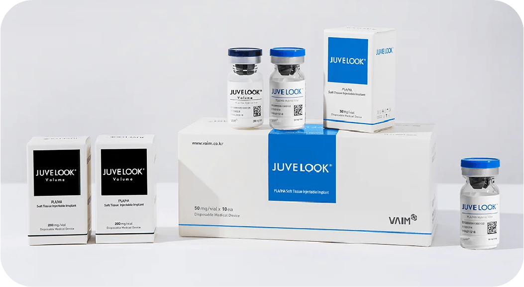 JUVELOOK、JUVELOOK Volume JUVELOOK喬雅露(新童妍) 玻尿酸結合膠原新生,重啟肌膚彈力與立體輪廓。 About the Treatment 什麼是 JUVELOOK 喬雅露(新童妍)? JUVELOOK 喬雅露是一款兼具「玻尿酸填充」與「膠原蛋白新生」的創新注射療程,透過微粒化 PDLLA 聚雙旋乳酸結合玻尿酸的獨特結構,能在皮膚內部提供立即支撐與長期彈力再生,實現深層修復與膚質逆轉。全系列分為小分子 JUVELOOK 劑型與大分子 JUVELOOK Volume 劑型,可依不同需求與部位量身搭配,是對抗老化、撫平細紋與雕塑輪廓的高效選擇。 Treatment Features JUVELOOK 喬雅露(新童妍)兩大劑型介紹 全系列分為小分子 JUVELOOK 劑型與大分子 JUVELOOK Volume 劑型,可依不同需求與部位量身搭配,是對抗老化、撫平細紋與雕塑輪廓的高效選擇 JUVELOOK 小分子劑型(JUVELOOK 50) 從膚質根源改善,打造光澤水嫩肌微粒細小(20–40μm),適用於真皮層淺層注射,有效 撫平細紋、改善毛孔粗大與膚質不均,重現肌膚細緻柔嫩感。 自然填補凹陷,提亮膚色與保濕度對於皮膚較薄的部位如淚溝、頸紋等凹陷區域,提供自然填補 效果,提升整體光澤感與緊緻度。 適用施作部位全臉、額頭紋、眼周細紋、痘疤/凹疤、毛孔粗大 淚溝、頸部紋路 JUVELOOK 小分子劑型適用於全臉膚質改善,特別針對額頭紋、眼周細紋、毛孔粗大、痘疤與凹疤,以及淚溝與頸部細紋等皮膚較薄或紋路明顯的部位。透過淺層注射進行細緻修復,幫助撫平細紋、提升保濕度與光澤感,使膚質看起來更加細膩、均勻且柔嫩,適合以「養膚質」為主要需求的族群。 JUVELOOK 大分子劑型(JUVELOOK Volume 200) 深層支撐重塑輪廓,改善老化凹陷粒徑較大(40–80μm),適用於真皮下層與皮下脂肪層,針對 明顯凹陷與深層皺紋進行穩定填補,重塑立體輪廓。 促進膠原新生,拉提緊緻感升級聚雙旋乳酸 PDLLA 可長效刺激膠原蛋白新生,提升肌膚緊實度 與彈性,減緩鬆弛下垂等老化現象。 適用施作部位臉頰凹陷、夫妻宮、法令紋、木偶紋、額頭、下顎線、太陽穴 橘皮組織、妊娠紋等深層凹陷與老化區域 JUVELOOK 大分子劑型主要適用於臉頰凹陷、夫妻宮、法令紋、木偶紋、額頭、下顎線與太陽穴等需要結構支撐與輪廓重塑的部位,亦可應用於橘皮組織與妊娠紋等深層老化區域。透過穩定填補與膠原新生刺激,改善因老化造成的凹陷與鬆弛問題,使輪廓線條更加立體、緊實且自然,適合追求長效支撐與整體輪廓提升的人。 Treatment Process JUVELOOK喬雅露(新童妍)/Volume 施作流程 STEP 01 3D 皮膚與臉部輪廓檢測 使用 3D META VU 儀器進行 360 度全臉掃描,精準分析膚質、輪廓結構與老化狀況,作為後續評估依據。 STEP 02 院長一對一諮詢 透過 1 對 1 客製化諮詢,了解個人膚況與主要在意問題,量身規劃治療部位與劑型選擇。 STEP 03 精準注射 敷上表層麻醉霜,提升施作舒適度,醫師依精準劑量原則,針對需要改善的區域進行注射。 STEP 04 術後說明與保養建議 輕柔舒緩肌膚,確認膚況穩定後結束療程,並提供術後照護建議,確保恢復期順利。 Who Is It For? 推薦施作對象 • 想改善膚質粗糙、乾燥、細紋者• 有痘疤、凹疤、膚色不均困擾者• 臉部輪廓鬆弛、凹陷或不立體者• 想填補淚溝、法令紋、夫妻宮等部位者• 害怕手術、尋求自然漸進式膠原增生療程者 Aftercare Guidelines 術後注意事項 1. 施作後約一週內請避免飲酒、劇烈運動、三溫暖與泡澡等高溫活動。 2. 根據個人體質不同,施作部位可能出現瘀青、腫脹或輕微疼痛,通常會在數日內自然消退。 3. 建議勤擦保濕產品,白天外出時務必使用防曬乳保護施作部位。 4. 若施作部位有任何異常反應,請立即回診或聯繫醫療院所處理。 Possible Side Effects & Risks 副作用與風險提醒 所有療程皆因個人體質與狀況不同,可能導致效果出現差異,也有極少數機率出現副作用。建議您在療程施作前,務必與醫師進行充分且詳盡的諮詢,確認自身狀況是否適合施作,並審慎評估後再決定是否接受療程。